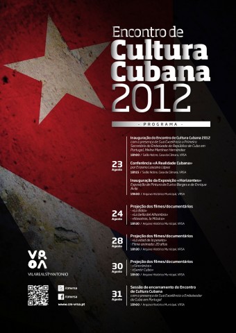 A edição de 2012 do Encontro de Cultura Cubana arranca esta quinta-feira, dia 23, às 18h00, no salão nobre da Câmara Municipal de VRSA, e conta com a presença de Sua. Ex.ª o Primeiro Secretário da Embaixada da República de Cuba em Portugal, Melne Martínez Hernández.