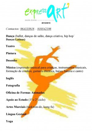 Para o ano lectivo 2012 / 2013, a Expressart’ disponibiliza, tal como em anos anteriores, cursos em diversas áreas artísticas como a Dança (ballet, danças de salão, dança criativa, hip hop e danças latinas), o Teatro, a Pintura, o Desenho ou a Música (expressão musical para crianças, instrumentos musicais, formação de combos, guitarra eléctrica, baixo, bateria e canto).
