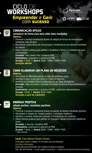 Num momento em que ganha cada vez maior importância a aquisição de competências para vencer os atuais desafios, a Câmara Municipal de Portimão promove em parceria com o IAPMEI – Instituto de Apoio às Pequenas e Médias Empresas e à Inovação o ciclo de workshops “Empreender e gerir com sucesso”, dirigido a empresários e gestores, mas também a potenciais empreendedores.