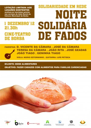 A Rede Social do concelho de Borba vai realizar a Noite Solidária de Fados, no dia 01 de dezembro, pelas 21.30 horas, no Cine-Teatro de Borba, com a presença dos fadistas D. Vicente da Câmara, José da Câmara, Teresa da Câmara, João Rita, José Geadas, João Tiago e Geninha Tiago, acompanhados à viola por Mário Estorninho e à guitarra por Luís Petisca. Esta atividade de solidariedade em rede tem como objetivo apoiar famílias carenciadas do concelho, através da elaboração de cabazes com bens alimentares obtidos durante a iniciativa. O acesso à iniciativa é mediante a entrega de pelo menos um alimento.