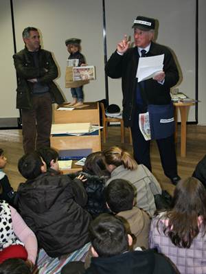 Participaram cerca de 50 crianças, duas turmas do 4º ano do 1º ciclo, uma da Escola dos Sininhos e outra da Escola Nova, que receberam o protagonista com um pregão bem-sonante: “Olh’à Bola! Olha o Comércio! Olh’ó Notícias! Olha o Janeiro!”, fazendo-o regressar ao passado.