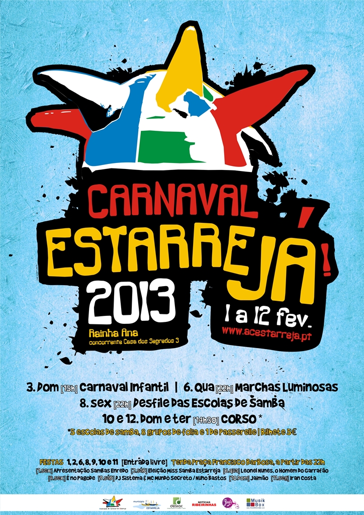 Carnaval13_Cartaz FinalssA tradição remonta ao final do século XIX e continua viva em pleno século XXI. O programa oficial dos festejos carnavalescos abre no dia 1 de fevereiro e termina a 12, terça-feira de Carnaval.