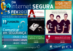 O Dia Europeu da Internet Segura promete mobilizar no próximo dia 5 de fevereiro mais de 700 alunos da comunidade escolar do concelho de Lamego que vão poder assistir a três grandes ações que visam um objetivo comum: lançar um alerta para as questões da privacidade e proteção de dados e apelar à utilização consciente das novas tecnologias. Ao longo do dia, vão decorrer diversas sessões de sensibilização e de informação ligadas a estas temáticas e a apresentação de uma peça de teatro sobre bullying e cyberbullying com a participação de conhecidos atores nacionais.