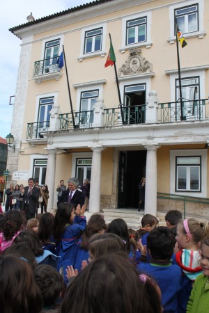 As comemorações do Dia da Cidade tiveram início cerca das 10h00, com o hastear das bandeiras, na varanda dos Paços do Concelho. A nobre tarefa protocolar foi assegurada pelo Presidente da Câmara, Álvaro Pereira, e por seis alunos de estabelecimentos de ensino pré-escolar do concelho do Agrupamento de Escolas Guilherme Stephens.