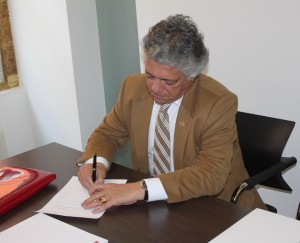 O contrato foi celebrado entre o representante do Município da Marinha Grande, Álvaro Pereira e os representantes do Estado e do Instituto de Emprego e Formação Profissional, IP.