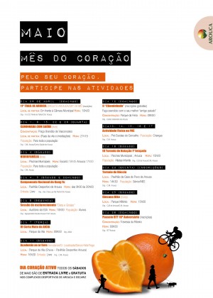 A primavera trouxe de novo o sol e um pouco mais de calor. Maio é, assim, o mês ideal para cuidar melhor do seu coração. Ao longo de todo o mês, a Câmara Municipal propõe-lhe diversas atividades desportivas e de lazer, gratuitas e abertas a toda a população, no «maio: Mês do Coração». Cuide melhor da sua saúde. Cuide melhor do seu coração. Pratique desporto e conviva. Há uma série de iniciativas que pode consultar aqui.