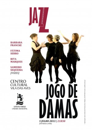 Ciclo de Jazz - JOGO DE DAMAS - imagem de cartazQuatro vozes para um concerto de jazz feito no feminino. No âmbito do VI Ciclo de Jazz de Santo Tirso, e depois dos concertos do projeto LAMA e do Paulo Gomes Trio, é agora a vez de subir ao palco do Centro Cultural de Vila das Aves o grupo vocal Jogo de Damas. Concerto marcada para dia 5 de julho, às 21h30, com entrada livre.
