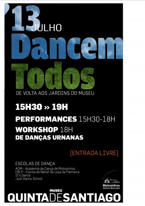 É com orgulho que, ao longo de sete anos, Matosinhos faz questão de contribuir e assim vem assistindo ao crescimento e desenvolvimento desta nossa comunidade ligada à dança, que ao pautar-se pelo talento e dedicação, através da atividade das escolas do concelho, irá reunir-se de novo este ano para a celebração da Dança nos Jardins do Museu da Quinta de Santiago, onde se espera que DANCEM TODOS.