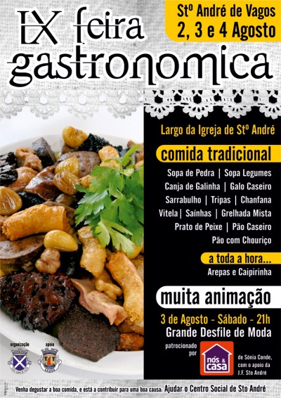Irá decorrer nos dias 2,3 e 4 de agosto de 2013, a já tradicional Feira Gastronómica de Sto. André de Vagos, junto à Igreja de Santo André de Vagos.