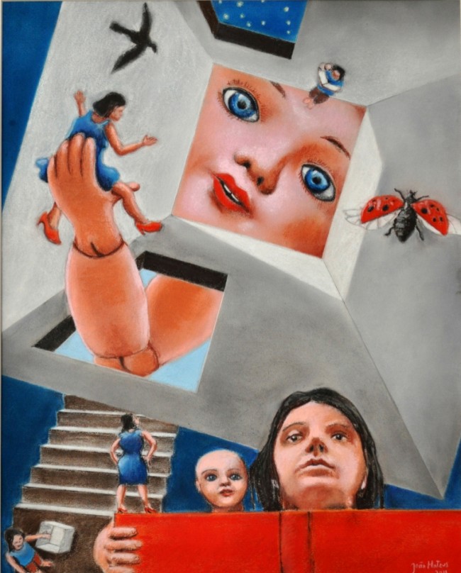 Uma dessas é de pintura e desenho, da autoria de João Mateus. Essa exposição partiu de “descobrir imagens que podem sair do sonho de alguém que dorme… acordar as memórias que podem dormir no interior de cada um de nós… abrir o livro de estórias que lemos, ouvir em nós os contos que nos contaram e transpor a realidade ficcional da sua ilustração, descobrindo outro universo de representação…”