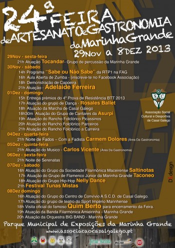 cartaz_culturalFAG2013_netO Parque Municipal de Exposições  da Marinha Grande é palco da realização da 24ª  FAG – Feira Nacional de Artesanato e Gastronomia da Marinha Grande,  que decorre de 29 de novembro a 8 de dezembro.
