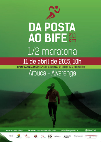 Poster_A3_DaPostaAoBife_cCMAA estrada Arouca/Alvarenga vai ser palco da Meia Maratona «Da Posta ao Bife», uma corrida com 21,1 quilómetros, que pretende incentivar a prática desportiva e promover o território, e que irá decorrer no próximo dia 11 de abril. Ao longo do percurso, os atletas poderão, a par da atividade desportiva, apreciar as paisagens das Serras de Montemuro e da Freita, bem como belíssimos troços do rio Paiva, verdadeiros ex-libris do Arouca Geopark. E, depois do exercício físico, a carne arouquesa e a doçaria conventual e tradicional serão, certamente, apreciadas. Ao longo de todo o dia 11 de abril haverá, portanto, condicionamentos ao trânsito, no decurso da prova. Esta iniciativa conta com o apoio da Câmara de Arouca.