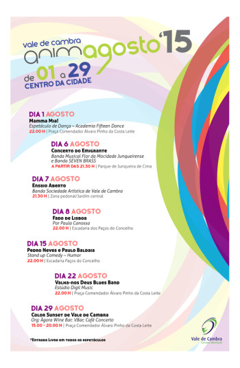 A Câmara Municipal de Vale de Cambra continua a promover o “Animagosto”, o evento que pretende levar concertos, música, dança, stand up comedy e ensaios abertos ao centro da Cidade de Vale de Cambra, procurando que as pessoas “fiquem por cá” no Verão.